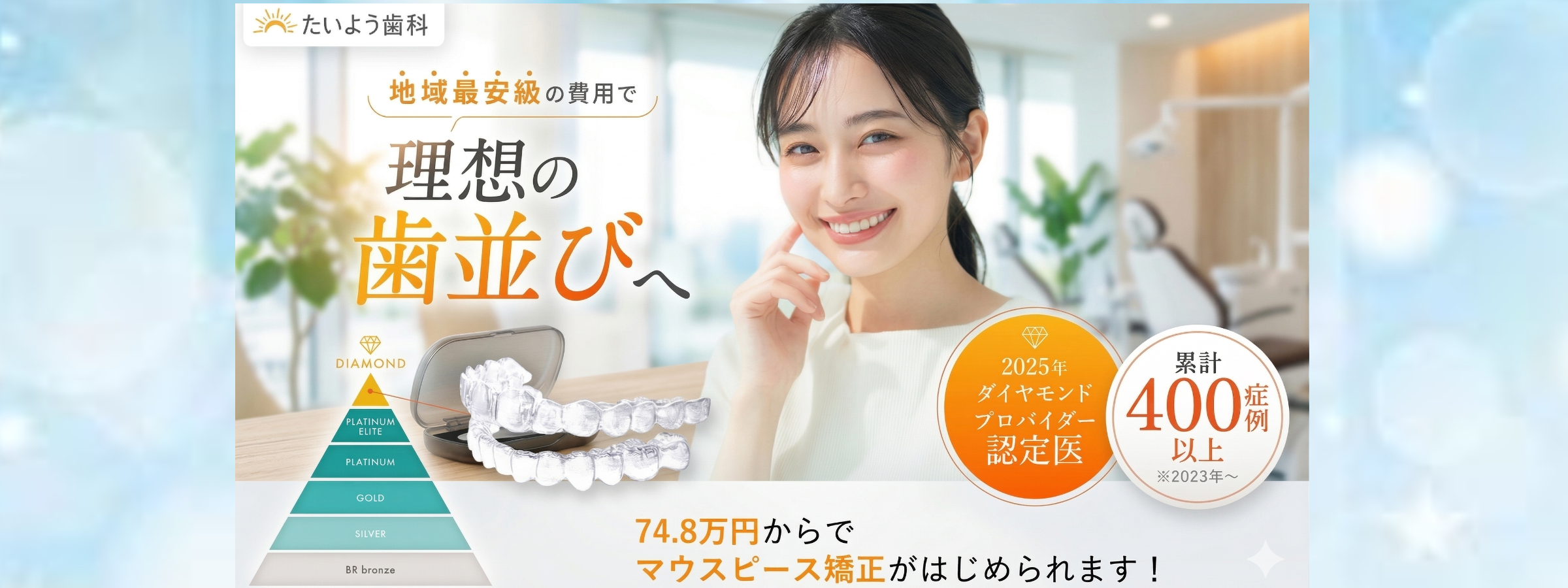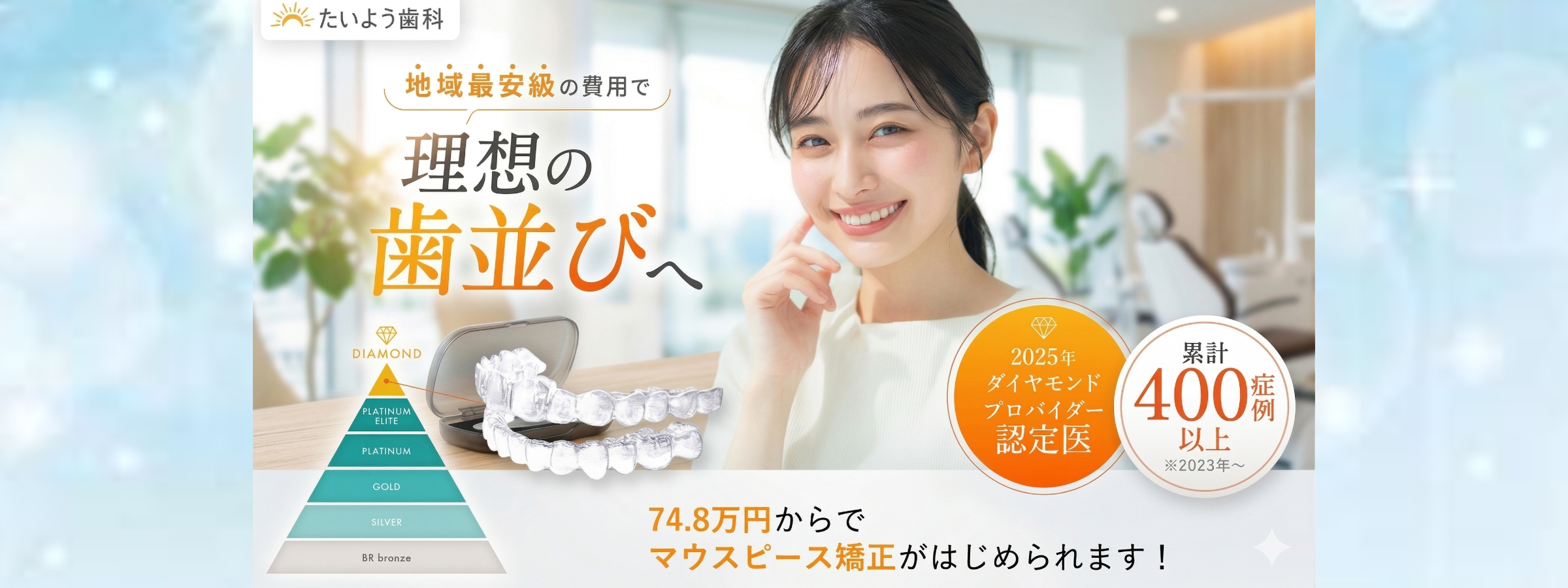 伊勢原市のたいよう歯科では、皆様の手の届きやすい価格でマウスピース矯正をご提供しています。